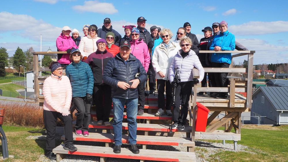6.5.2024: Yli 20 reipasta senioria kävelyretken yhteiskuvassa.