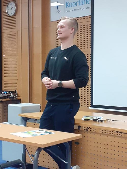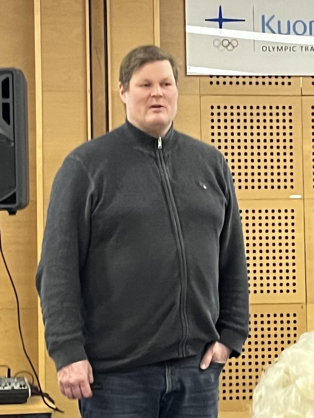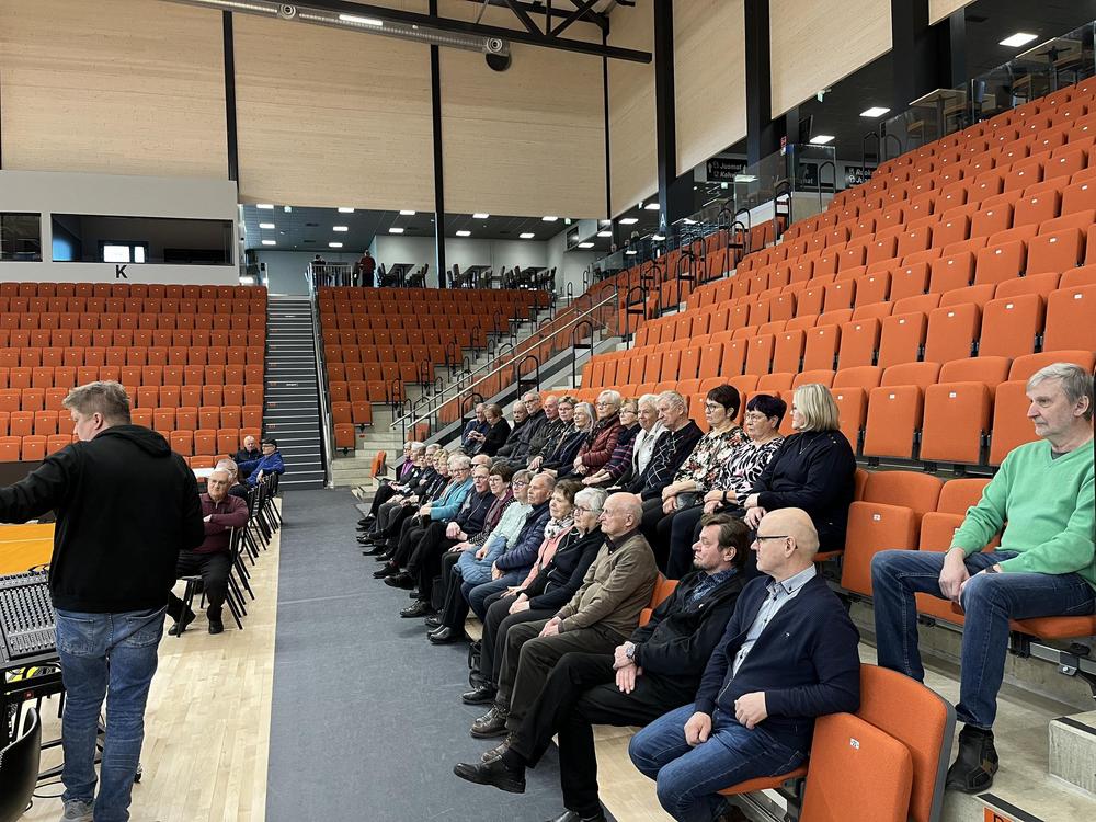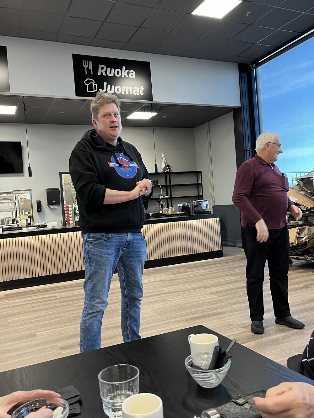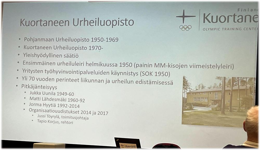 22.4.2024. Sokkotreffit suuntautui tänään Kuortaneen Urheiluopistolle. Matkaan lähti 50 senioria ja kuskimme Timo. Aluksi nautimme loistavan lounaan ja sitten saimme kuulla rehtori Tapio Korjuksen, kehitysjohtaja Olli-Pekka Karjalaisen ja toimitusjohtaja Jussi Töyrylän alustukset. Jussi vielä meitä jumpauttikin, nivelet notkeiksi - tyylillä ennen kahvia.