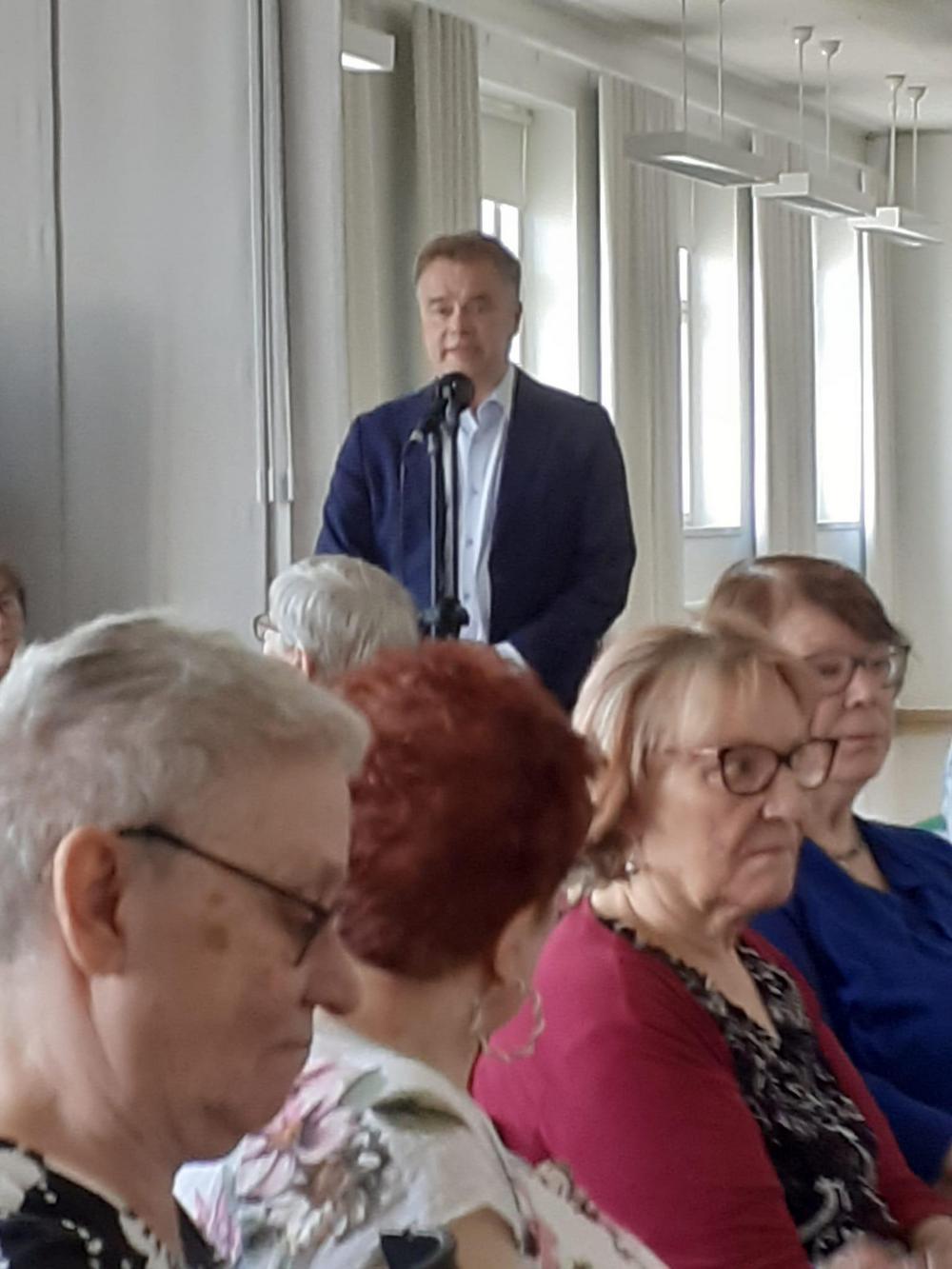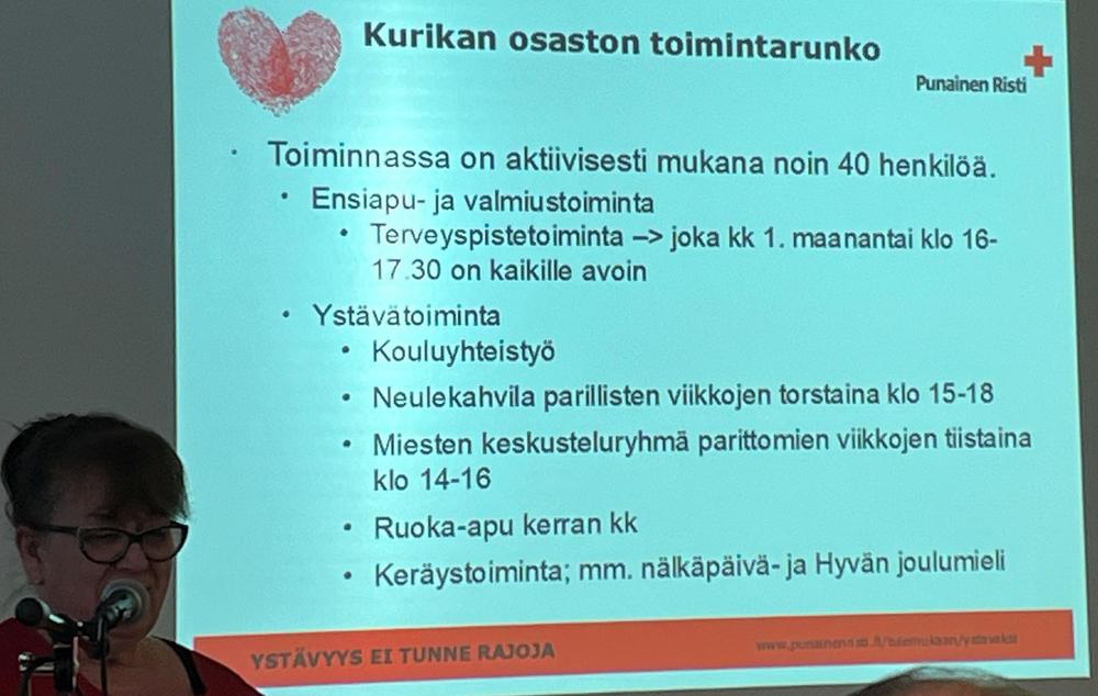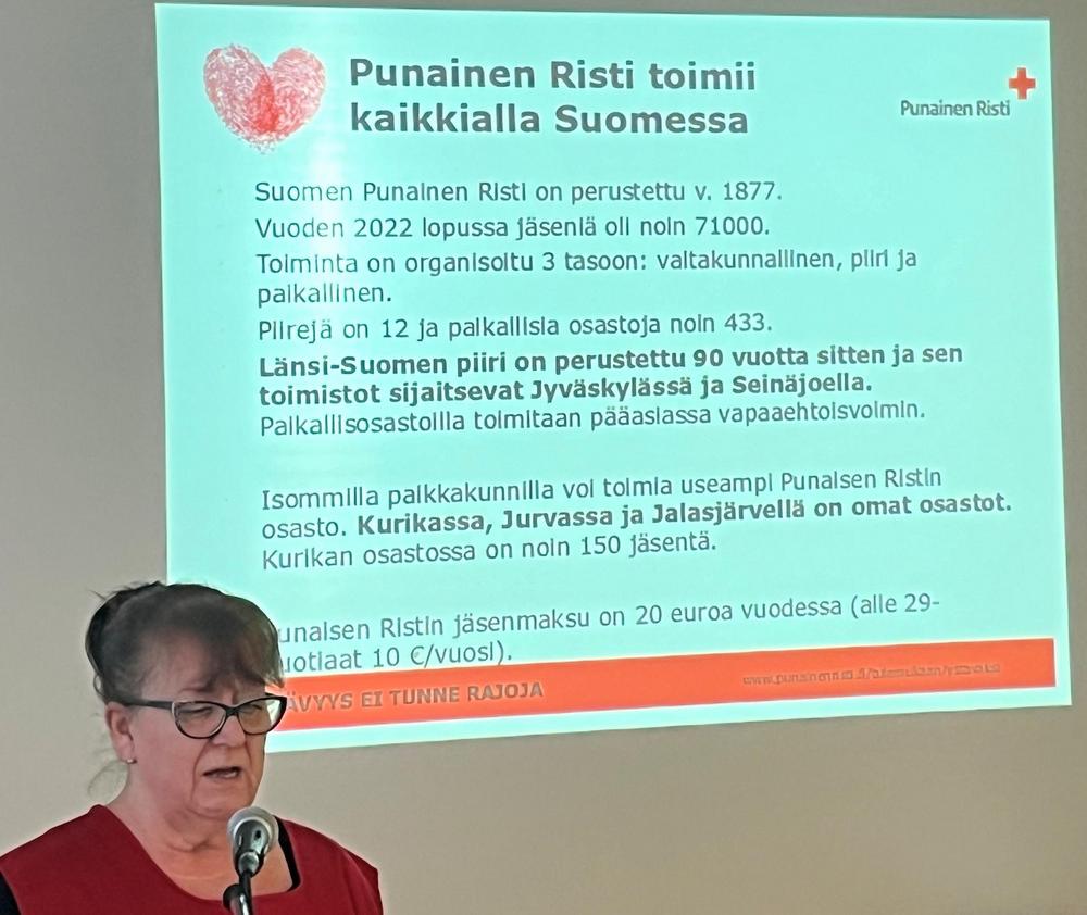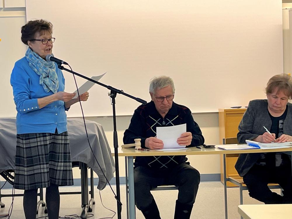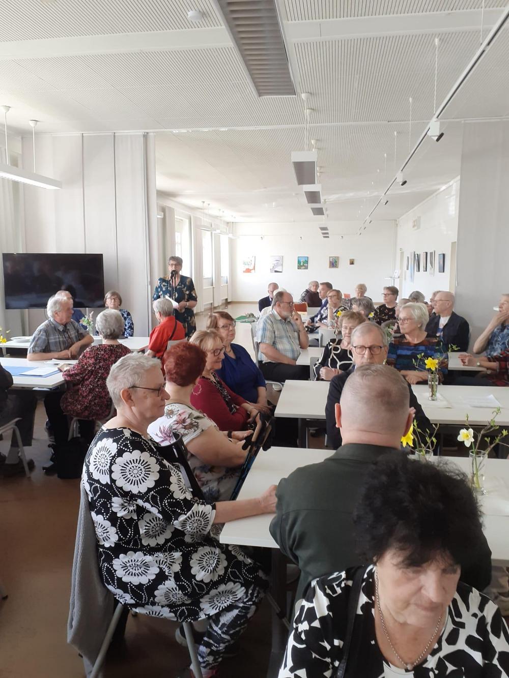 20.5.2024: Kurikan kaupungin tekninen johtaja Riikka Koskela kävi esittäytymässä senioreille ja kuulemassa kokousväen mietteitä vanhan lukion rakennuksen tärkeydestä.