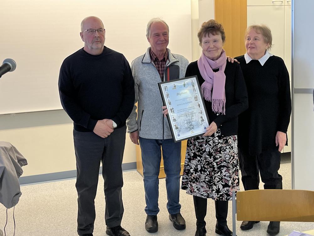 19.2.2024: Kiitokset entiselle puheenjohtajallemme Anna-Liisalle vuosien työstä Diplomin muodossa.