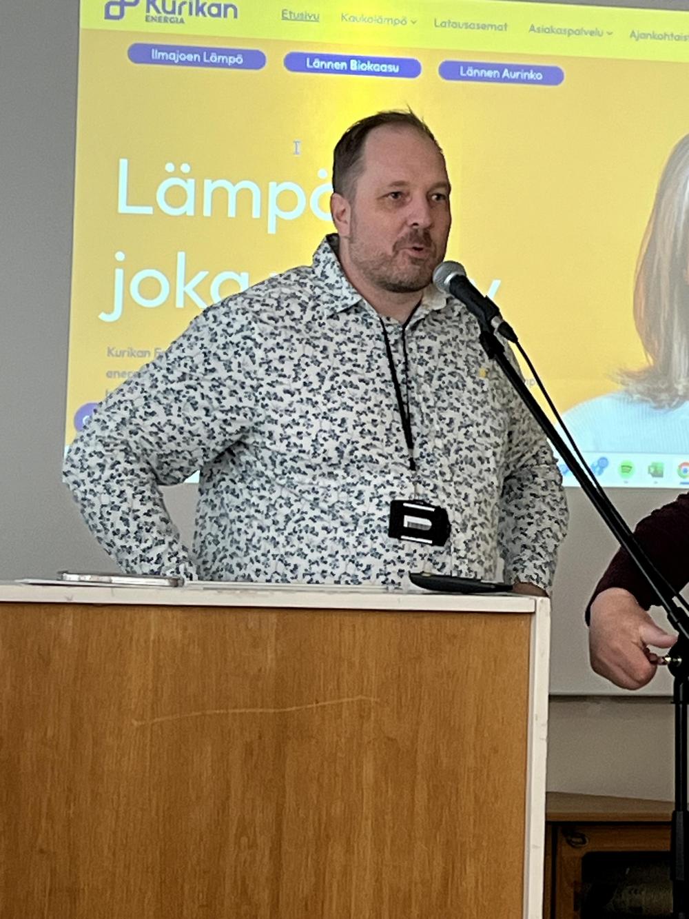 30.9.2024: Kurikan Energia tj. Petri Viinikainen esitelmöi laajasti Kurikan Energian toiminnasta. Kaukolämmön lisäksi Energia on laajentanut Bioalueelle ja suunnittelee isoa 28000MW:n aurinkovoimalaa. Kuulimme uusista hankkeista mm. sähkökattilan mukantulosta tuotantoon. Mielenkiintoa herätti myös savukasujen talteenotto, josta energiaa 10% verkkoon.