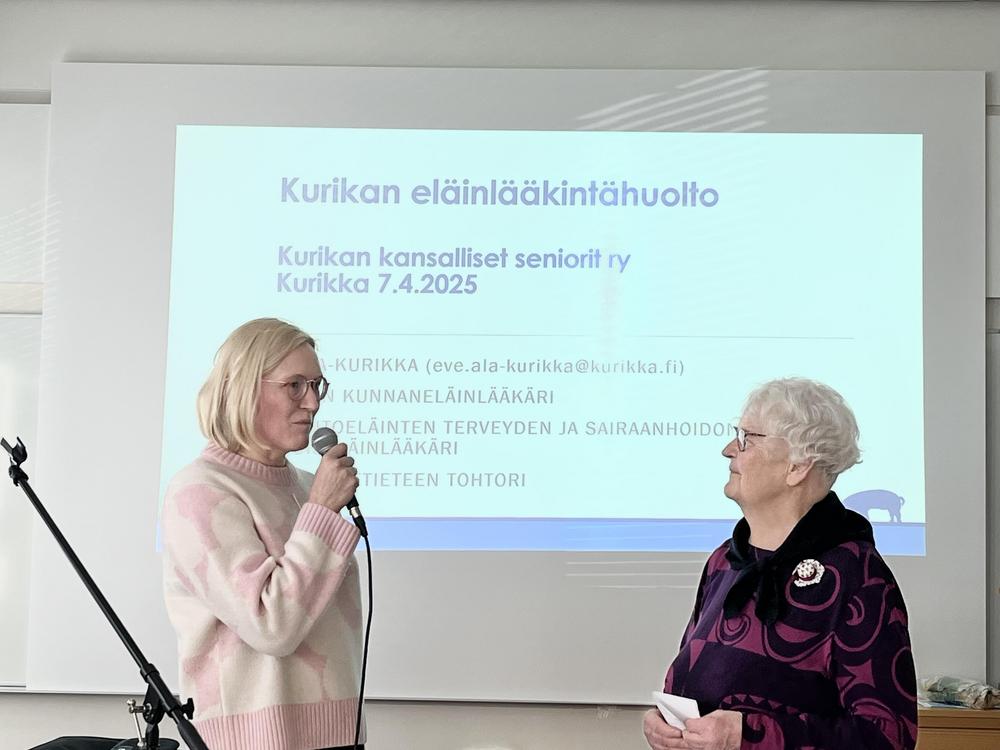7.4.2025 Eläinlääkäritoiminta Kurikassa. Kaija haastatteli eläiääkäri Eve Ala-Kurikkaa ennen esitelmää.