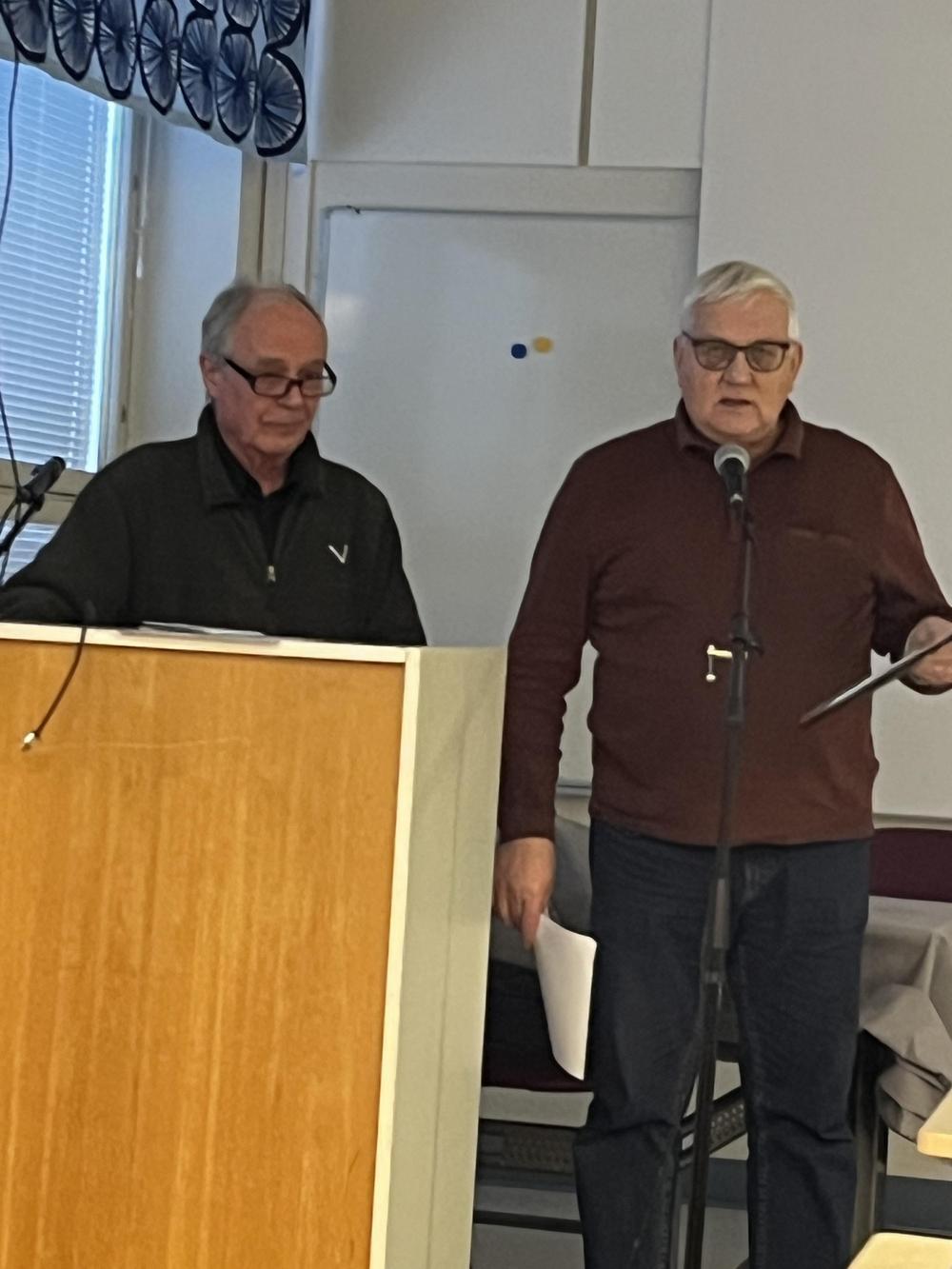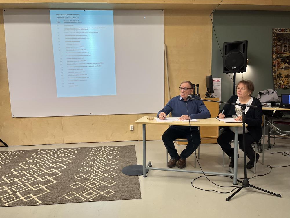 10.3.2025: Kevätkokous. Puheenjohtaja Sakari Ketola veti kokouksen asiantuntemuksella ja rutiinilla vierellään sihteerimme Pirjo Rantaniemi.