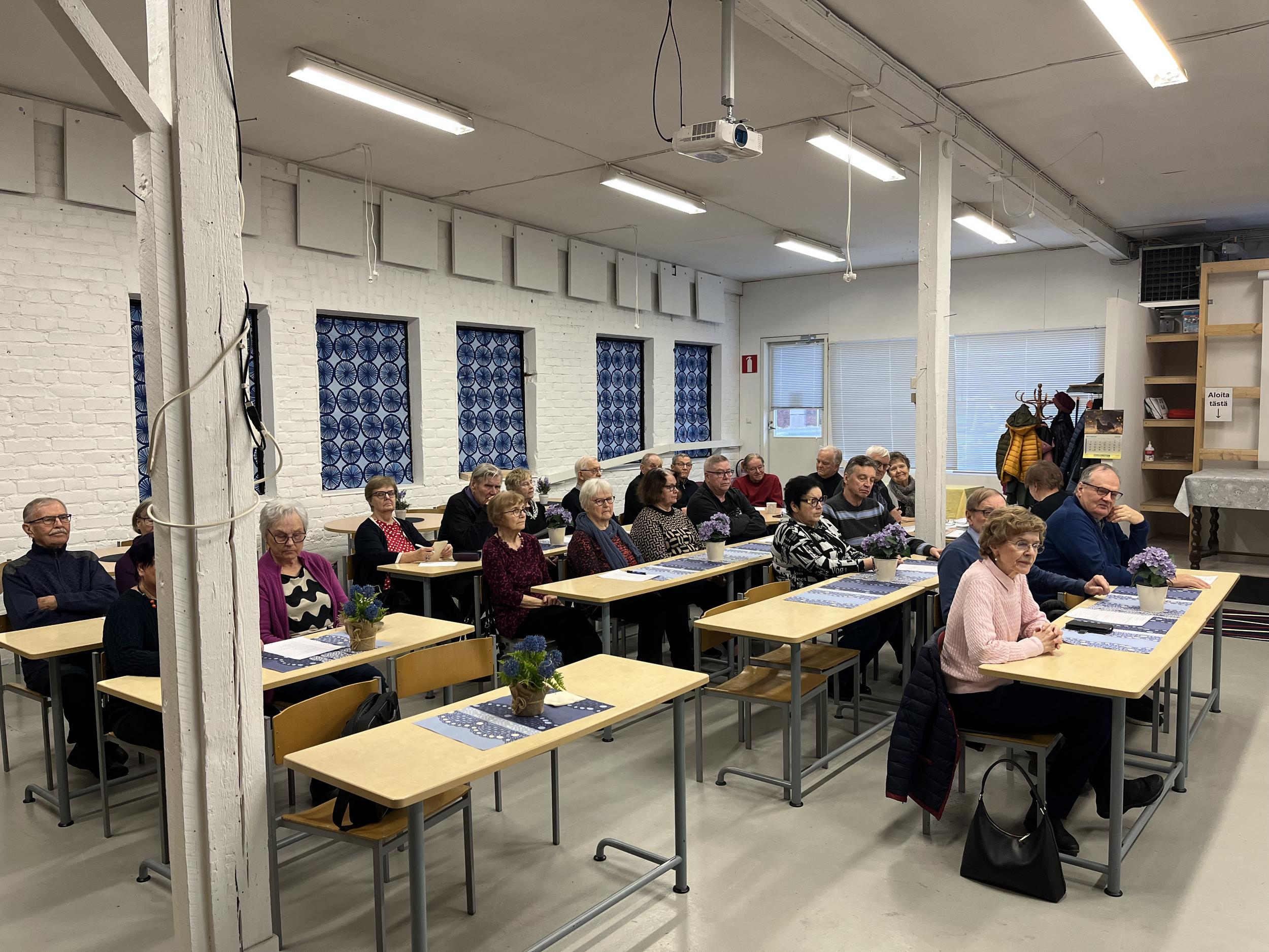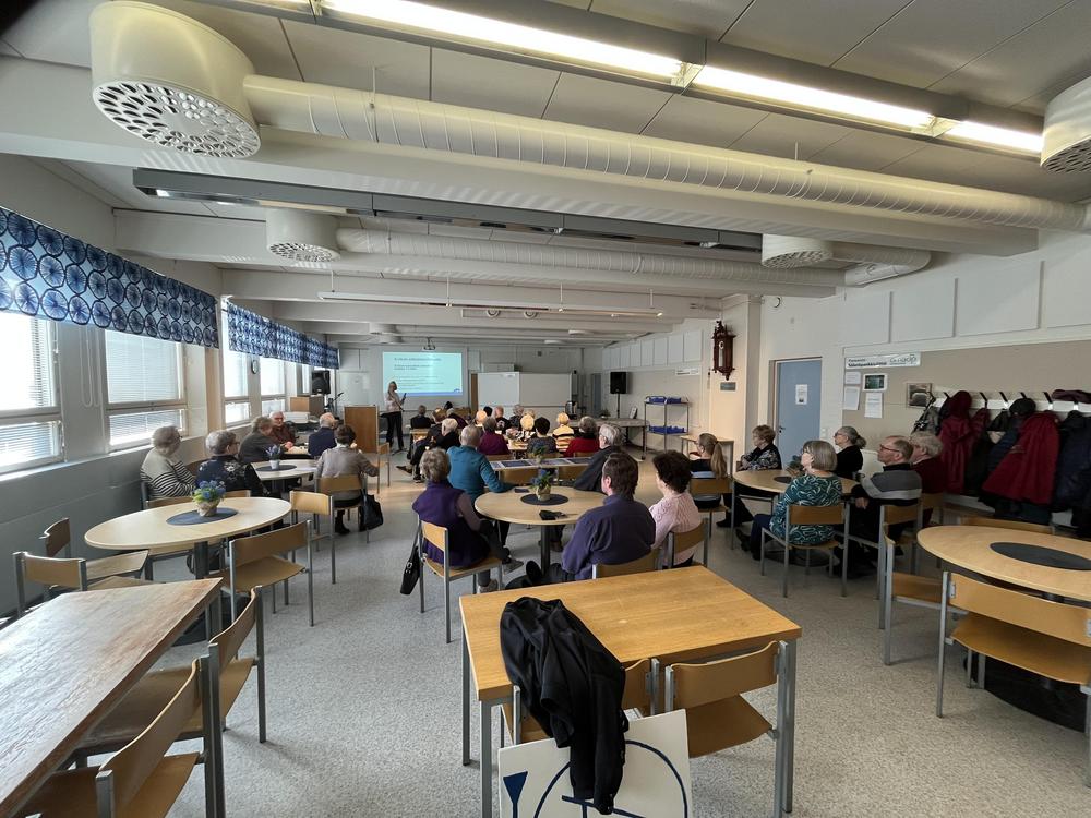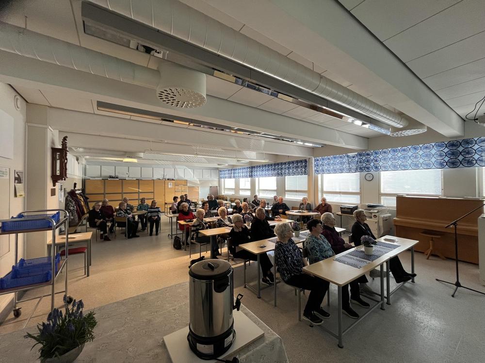 7.4.2025: Oli tilaa, hyvää ilmaa, avaruutta. Paikalla joka kokouksessa keskimäärin yli 40 senioria.