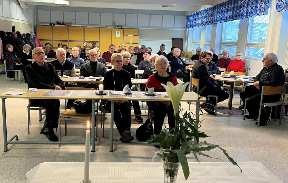 13.1.2025: Kynttilätilaisuus, jossa muisteltiin viime vuonna 2024 poisnukkuneita jäseniä. Muistokynttilän sytytti Raija T. Anttila.